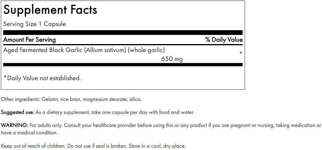 Swanson Aged Black Garlic 650 Milligrams 30 Capsules
