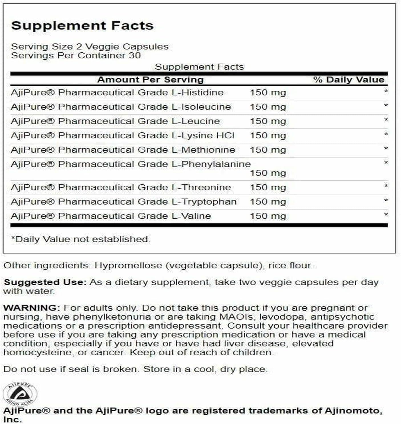Swanson Ajipure 9 Essential Amino Acid Formula Pharmaceutical Grade 60 Veg Capsules
