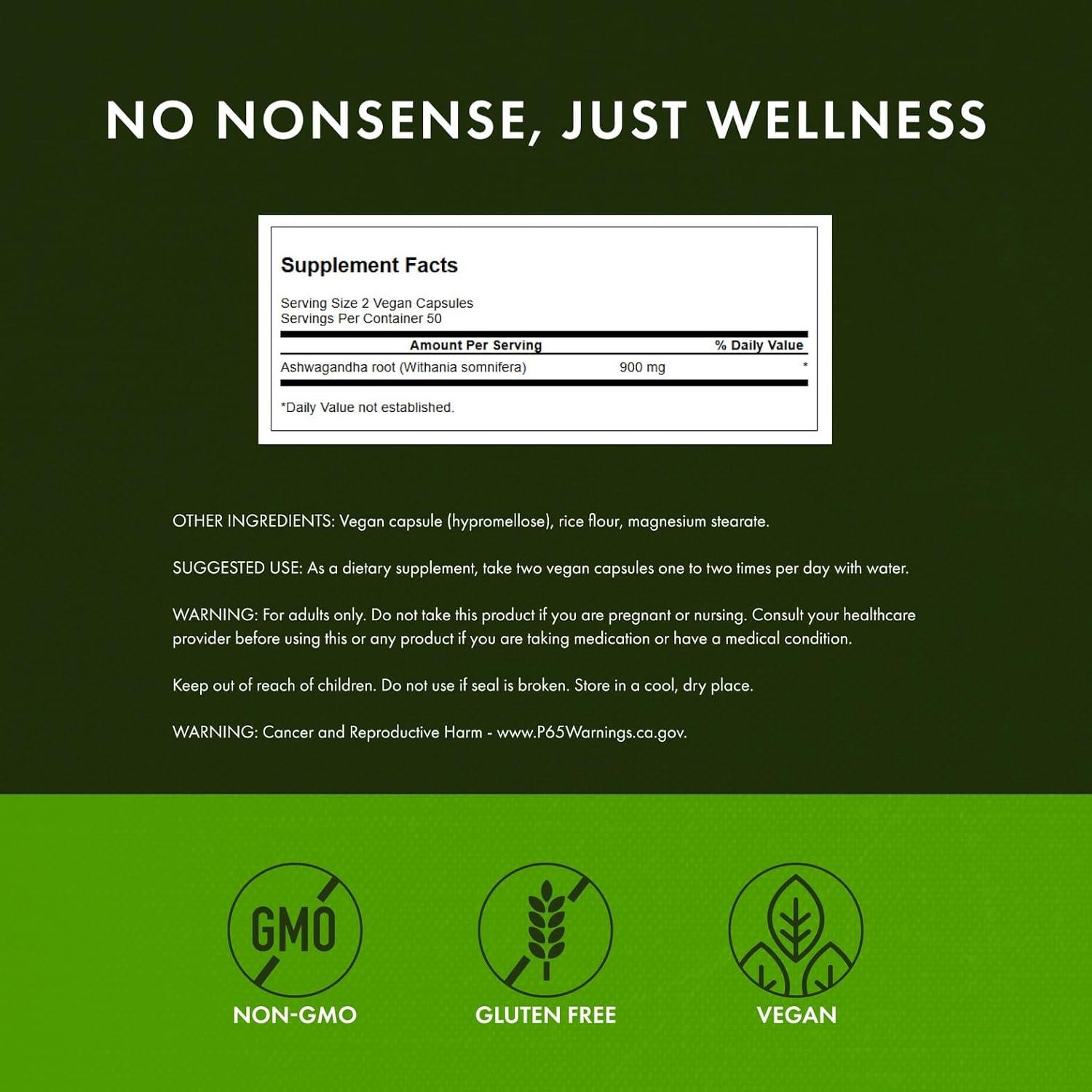 Swanson Ashwagandha Powder Supplement – Ashwagandha Root & Aerial Parts – Promotes Stress Relief & Energy – Ayurvedic Supplement for Natural Wellness (100 Capsules, 450mg Each)(100 Count (Pack of 2))