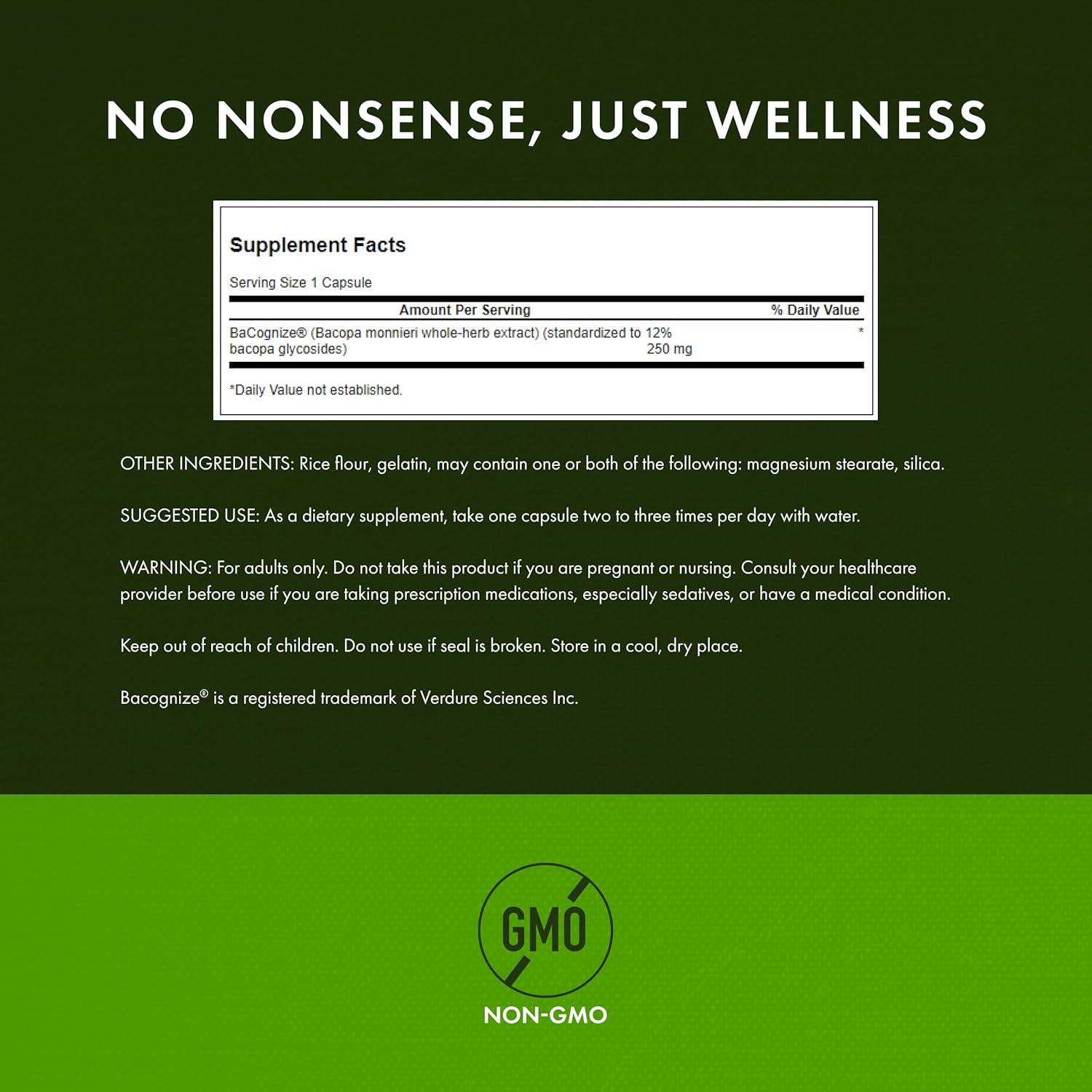 Features BaCognize whole-herb extract standardized to 12% bacopa glycosides
