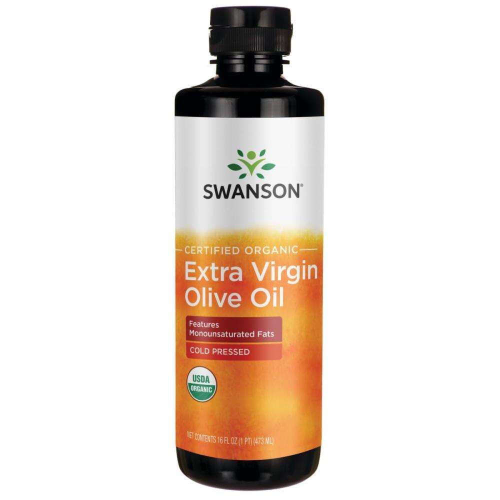 Swanson Certified 100% Organic Extra Virgin Olive Oil Cold Pressed 16 fl Ounce (1 pt) (473 ml) Liquid