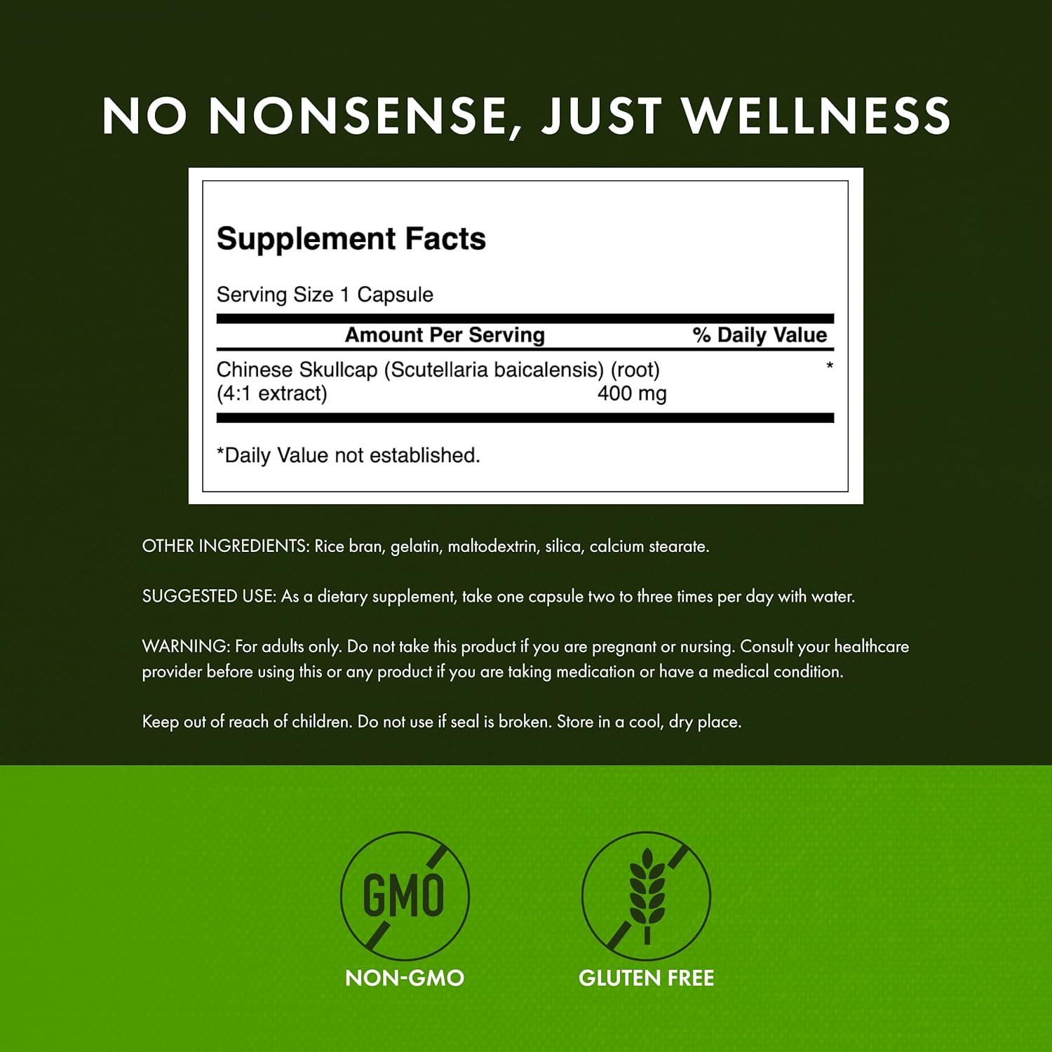 Swanson Chinese Skullcap – Herbal Supplement Promoting Relaxation & Sleep Support – Flavonoid Formula to Help Soothe Nerves – (90 Capsules, 400mg Each)(90 Count (Pack of 1))