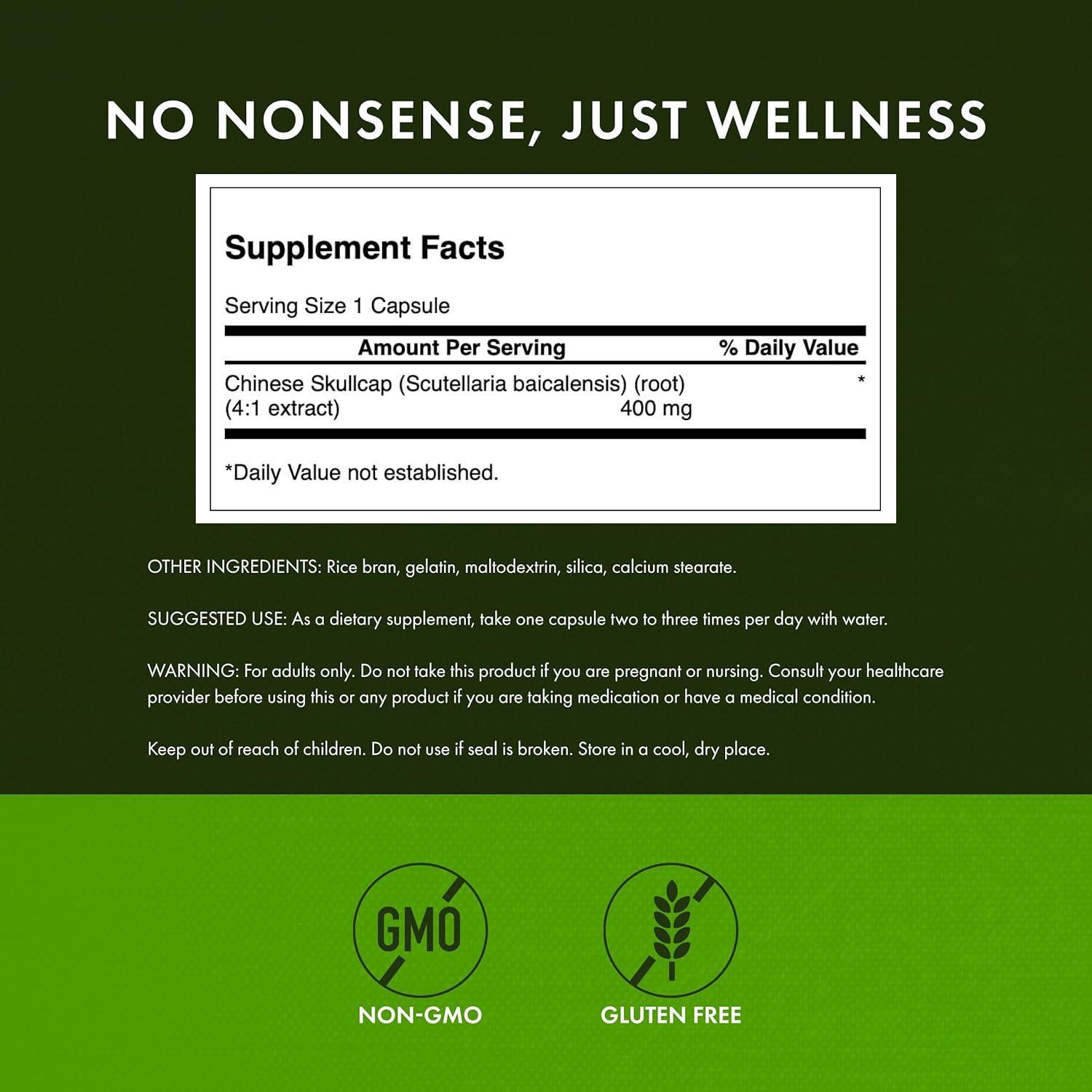 POWERFULLY PURE: Our relaxation support supplement delivers 4 mg chinese skullcap in an easy-to-swallow capsule you can take daily! Our natural formula is specially created for safe and effective support.