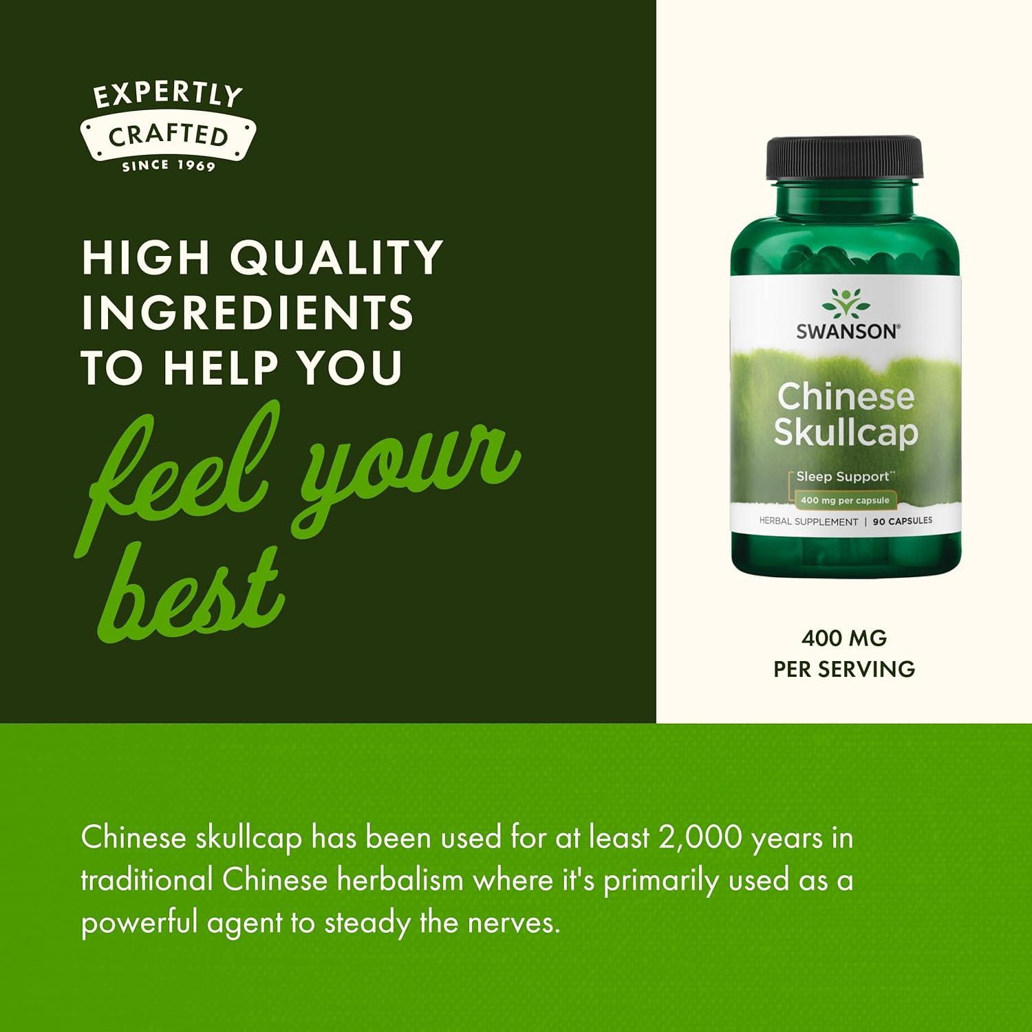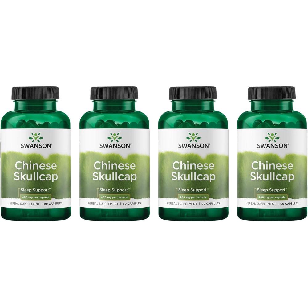 Swanson Chinese Skullcap – Herbal Supplement Promoting Relaxation & Sleep Support – Flavonoid Formula to Help Soothe Nerves – (90 Capsules, 400mg Each)(90 Count (Pack of 4))