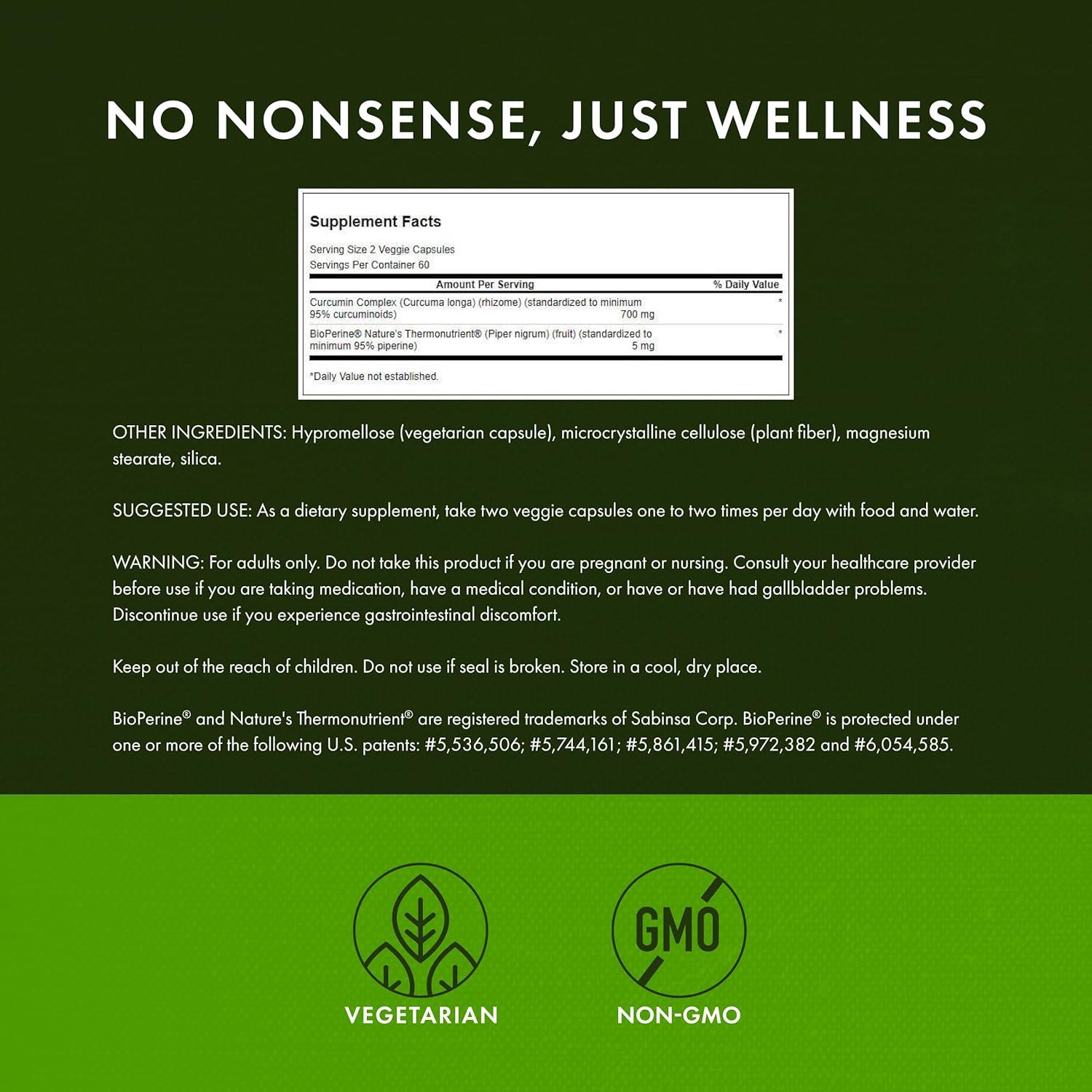 Swanson Curcumin Complex – Herbal Supplement Supporting Joint Health, Mobility & Physical Function – Standardized with BioPerine for Maximum Absorption – (120 Veggie Capsules)(120 Count (Pack of 2))