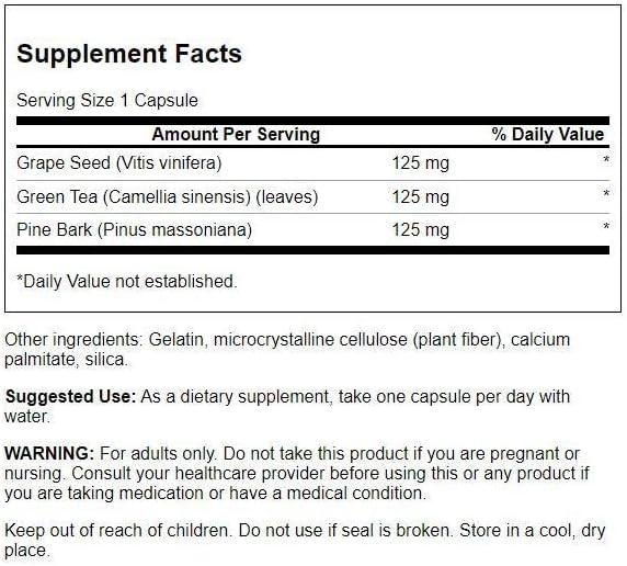 Swanson Grape Seed Green Tea & Pine Bark Complex Health Antioxidant Support Polyphenols OPCS Herbal Supplement 60 Capsules (Caps)