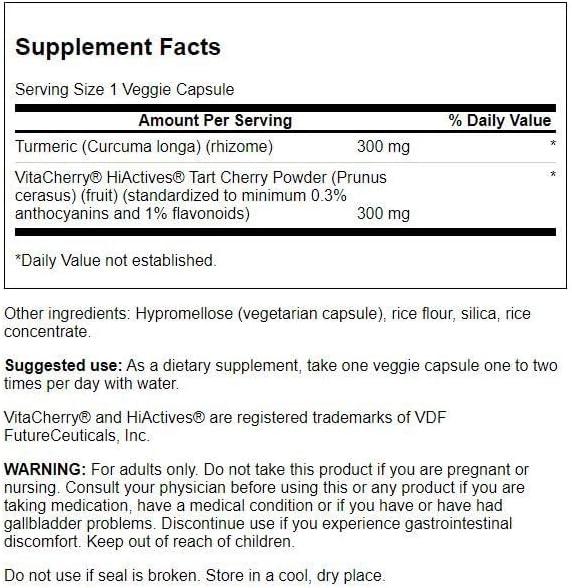 Swanson Hiactives Tart Cherry & Turmeric 60 Veg Capsules