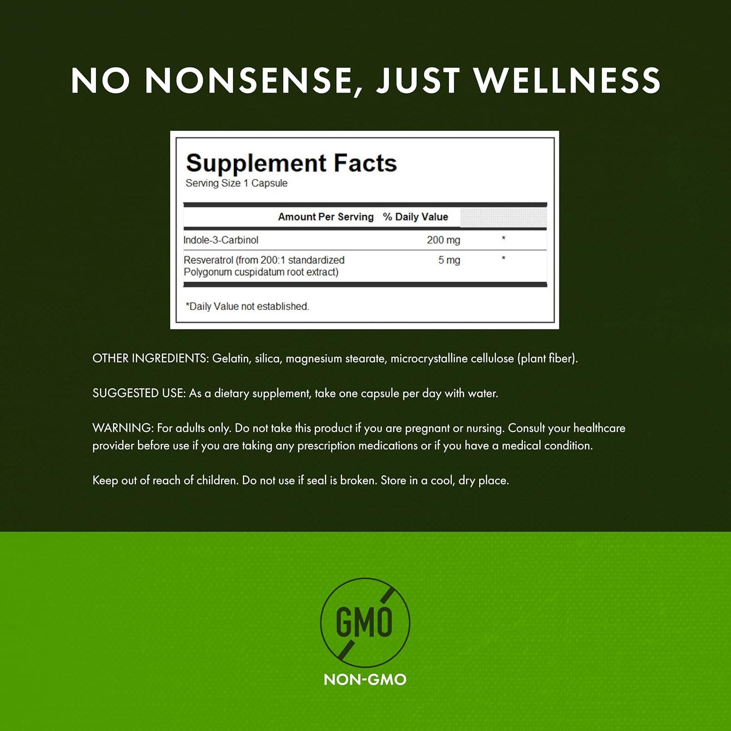 Delivering 200mg Indole-3-Carbinol and 5mg Resveratrol per capsule, this cellular defense supplement is one of nature's most powerful protectors and promotes a healthy cell cycle with natural ingredients