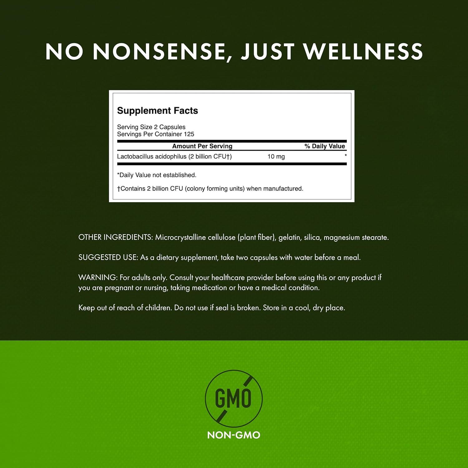 Swanson Lactobacillus Acidophilus – Probiotic Supplement Supporting Digestive Health with 1 Billion CFU Per Capsule – Promotes Bowel and GI Tract Health – (250 Capsules)(250 Count (Pack of 1))