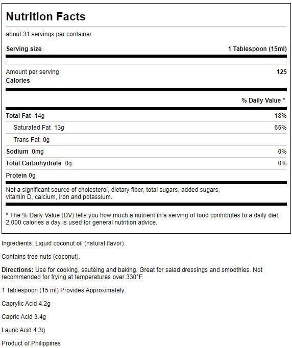 Swanson Liquid Coconut Oil Natural Flavor 16 fl Ounce (1 pt) (473 ml) Liquid