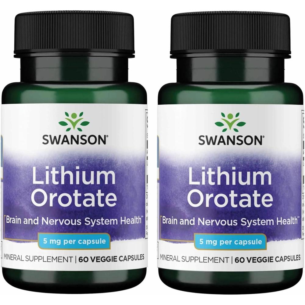 Swanson Lithium Orotate Antioxidant Mood Emotional Wellness Behavior Memory Support Supplement 5 mg 60 Veggie Capsules (Elemental Lithium)(60 Count (Pack of 2))