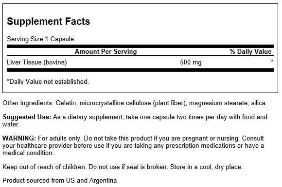 Swanson Liver Glandular 500 Milligrams 60 Capsules