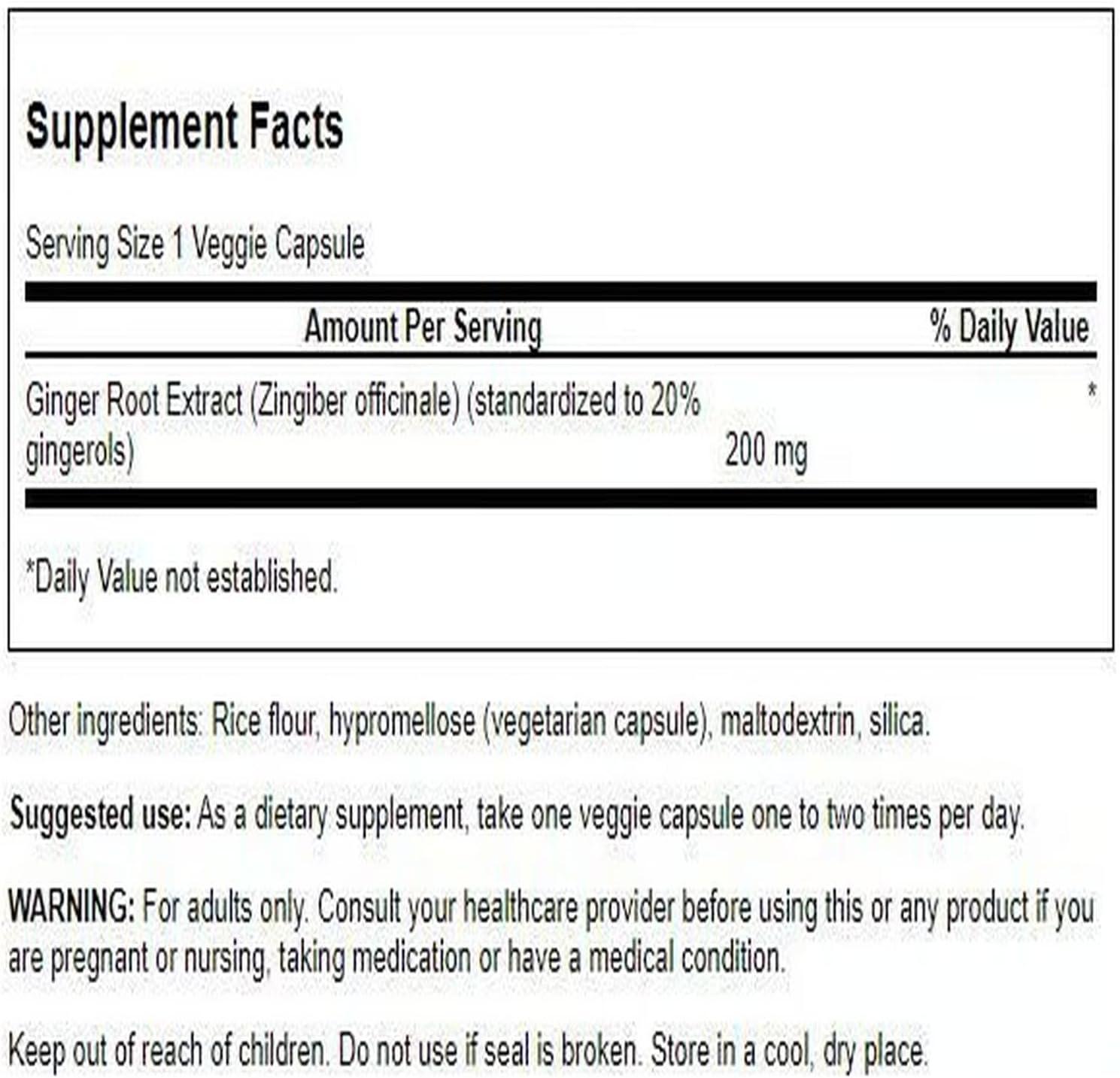 Swanson Maximum Strength Ginger Root Extract 200 Milligrams 60 Veg Capsules