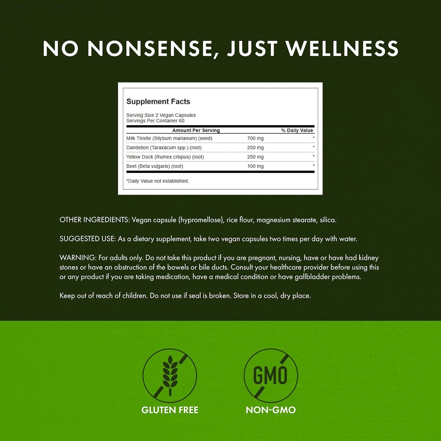POWERFUL HERBAL BLEND: Our liver health supplement is a powerful blend of time-honored ingredients, delivering 7 mg Milk Thistle Seed, 25 mg Dandelion Root, 25 mg Yellow Dock Root, and 1 mg Beet Root per capsule.