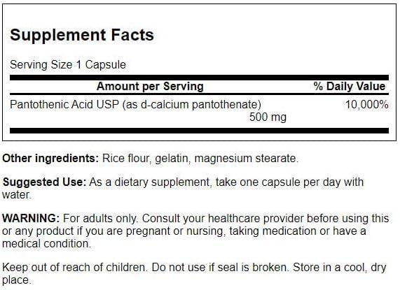 Swanson PANTOTHENIC Acid 500 MG 250 CAPS(4)