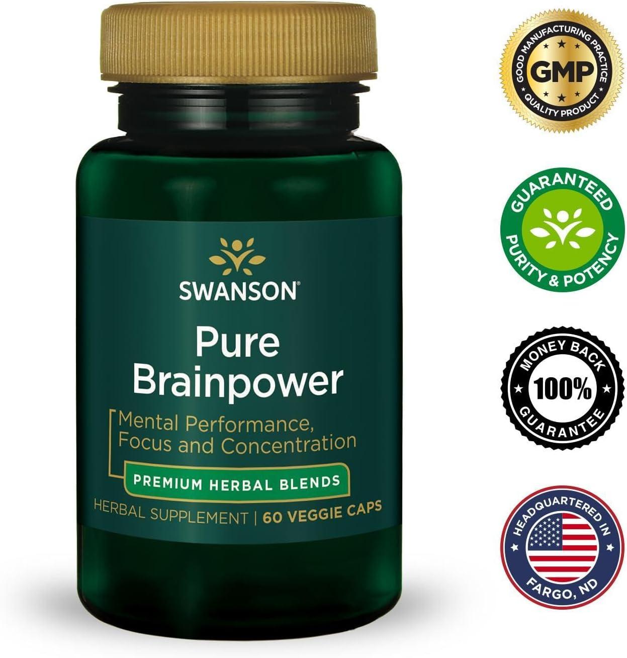 FOCUS '&' COGNITIVE FUNCTION FORMULA – Age, stress, environment and more can lead to concerns about brain health and cognitive function. Swanson Pure Brainpower delivers vital cognitive health support in clinically-studied ingredients to support optimal memory, focus and cognitive function. Pure Brainpower's blend of adaptogens, botanicals and traditional herbs focus on nutrients to help you're your brain sharp and maintain your mental performance.