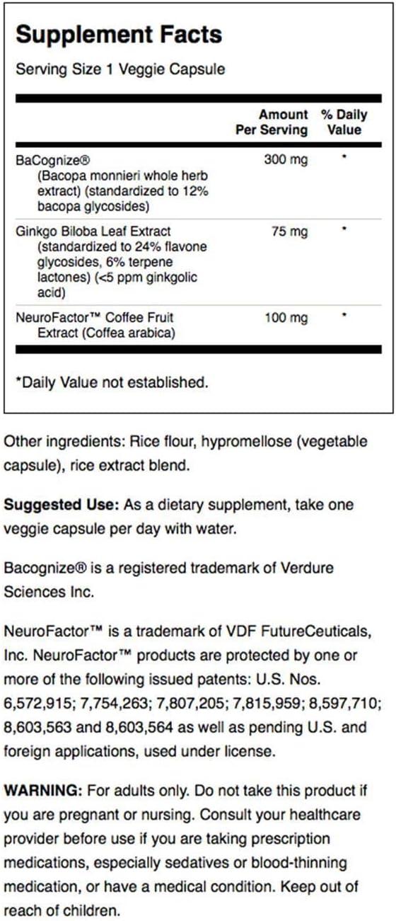 CLINICALLY-STUDIED INGREDIENTS – Swanson Pure Brainpower features clinically-studied ingredients to support brain and cognitive health. Ginkgo biloba, a traditional adaptogenic herb, promotes cognitive function and concentration with healthy blood flow to the brain. BaCognize, an extract of the herb Bacopa monnieri, is shown to stimulate vital neurotransmitters. NeuroFactor is a coffee fruit extract that supports the healthy production of brain-derived neurotrophic factor (BDNF).