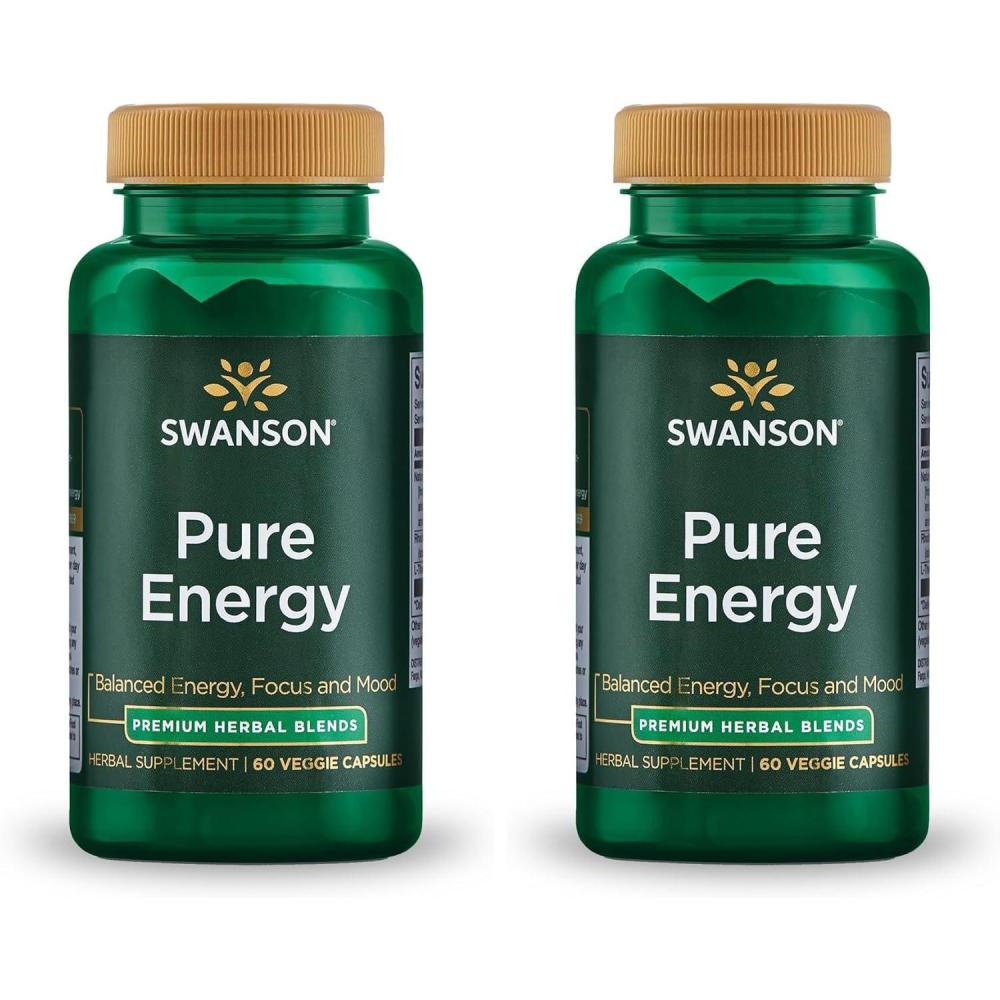 Swanson Pure Energy Metabolism Concentration Focus Support Stress Management Adaptogenic Herbs Herbal Supplement 60 Veggie Capsules (Veg Caps) Vegan(60 Count (Pack of 2))