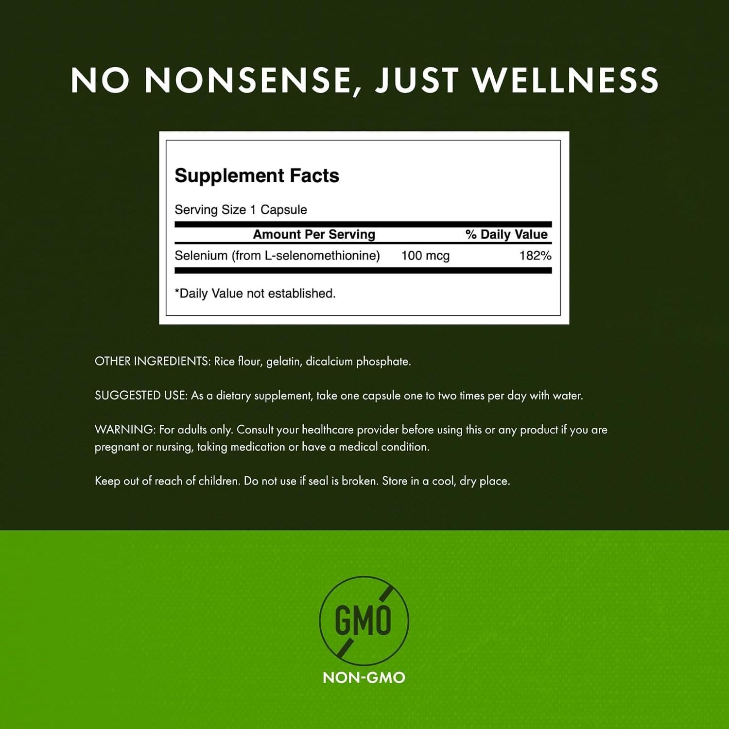 POWERFULLY PURE: Our wellness supplement delivers 100mcg selenium in an easy-to-swallow capsule you can take daily! Our natural formula is specially created for safe and effective support.