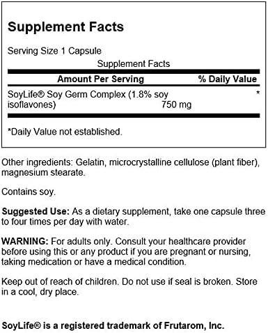 MENOPAUSE SUPPORT SUPPLEMENT: Swanson's Soy Isoflavones feature 75 mg of SoyLife complex per capsule, standardized to 1.8% isoflavone content. These natural wellness supplements help to relieve menopausal discomfort and provide potent soy nutrition.
