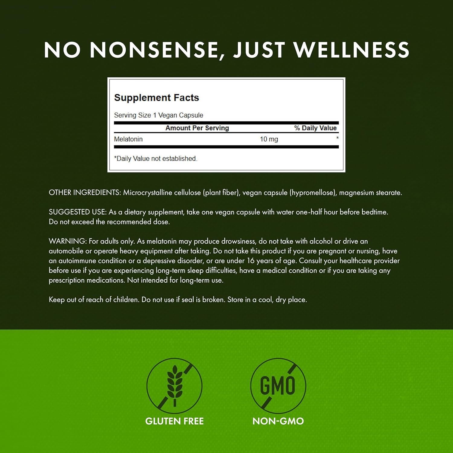 Swanson's Triple Strength Melatonin capsules deliver 10mg each, helping to manage disrupted sleep patterns due to work schedules, jet lag, and more