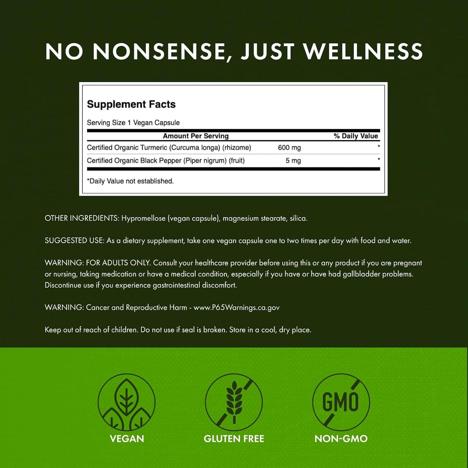 Premium Plant Formula: The joint health supplement is a full spectrum formula with organic turmeric and organic black pepper for a quality supplement