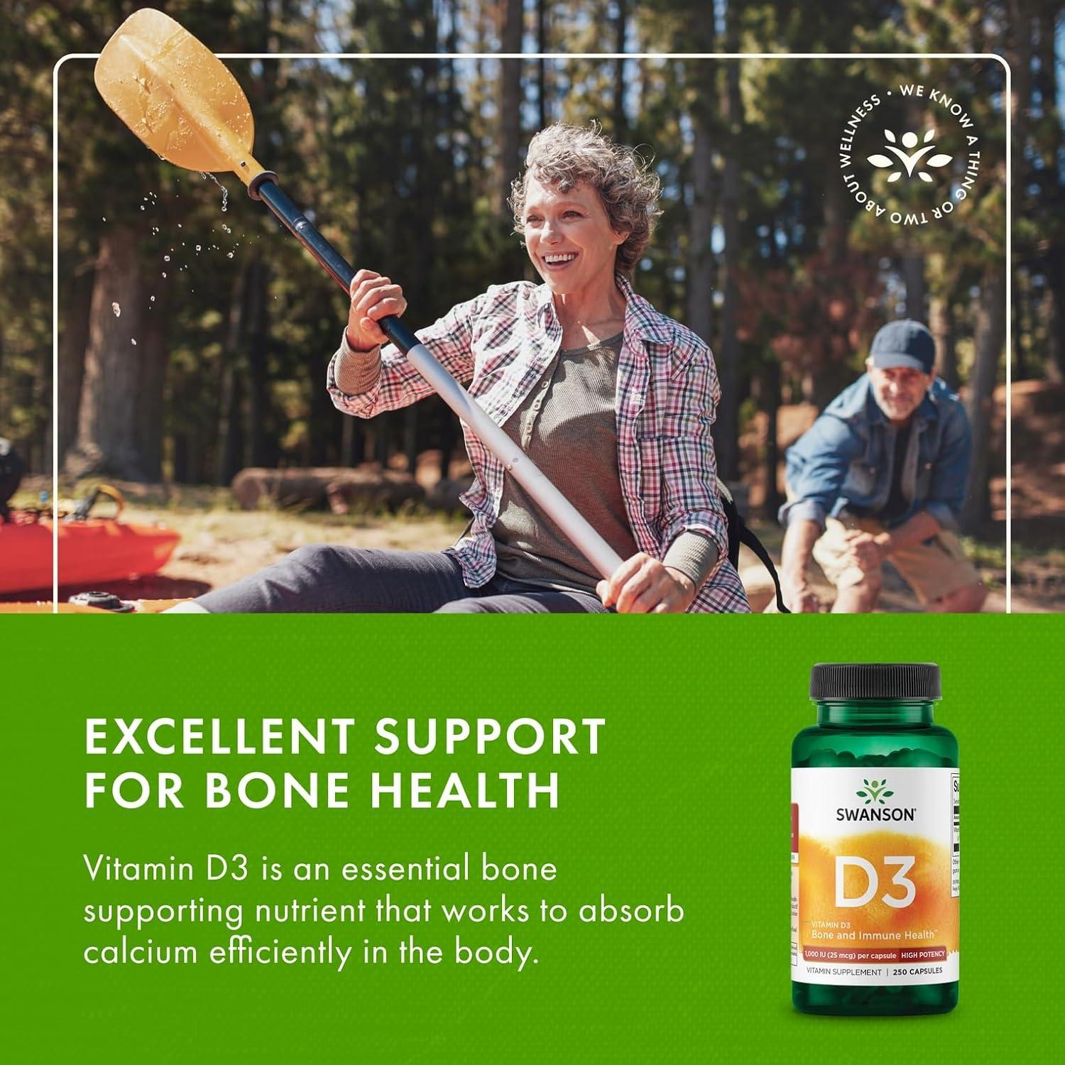 Swanson Vitamin D3 1000 IU – 250 Softgels – Bone Health, Immune Support, and Muscle Function Supplement
