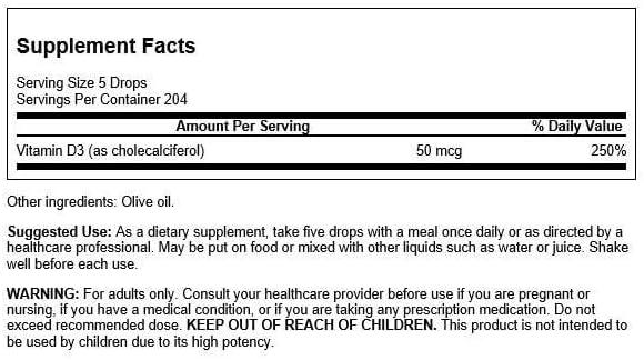 Swanson Vitamin D3 Liquid Drops 400 Iu (50 mcg) 1 fl Ounce (29.6 ml) Liquid