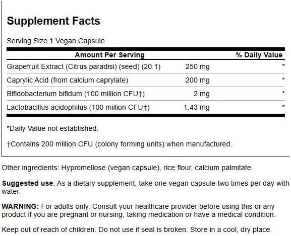 With grapefruit seed, caprylic acid, Lactobacillus acidophilus and Bifidobacterium bifidum